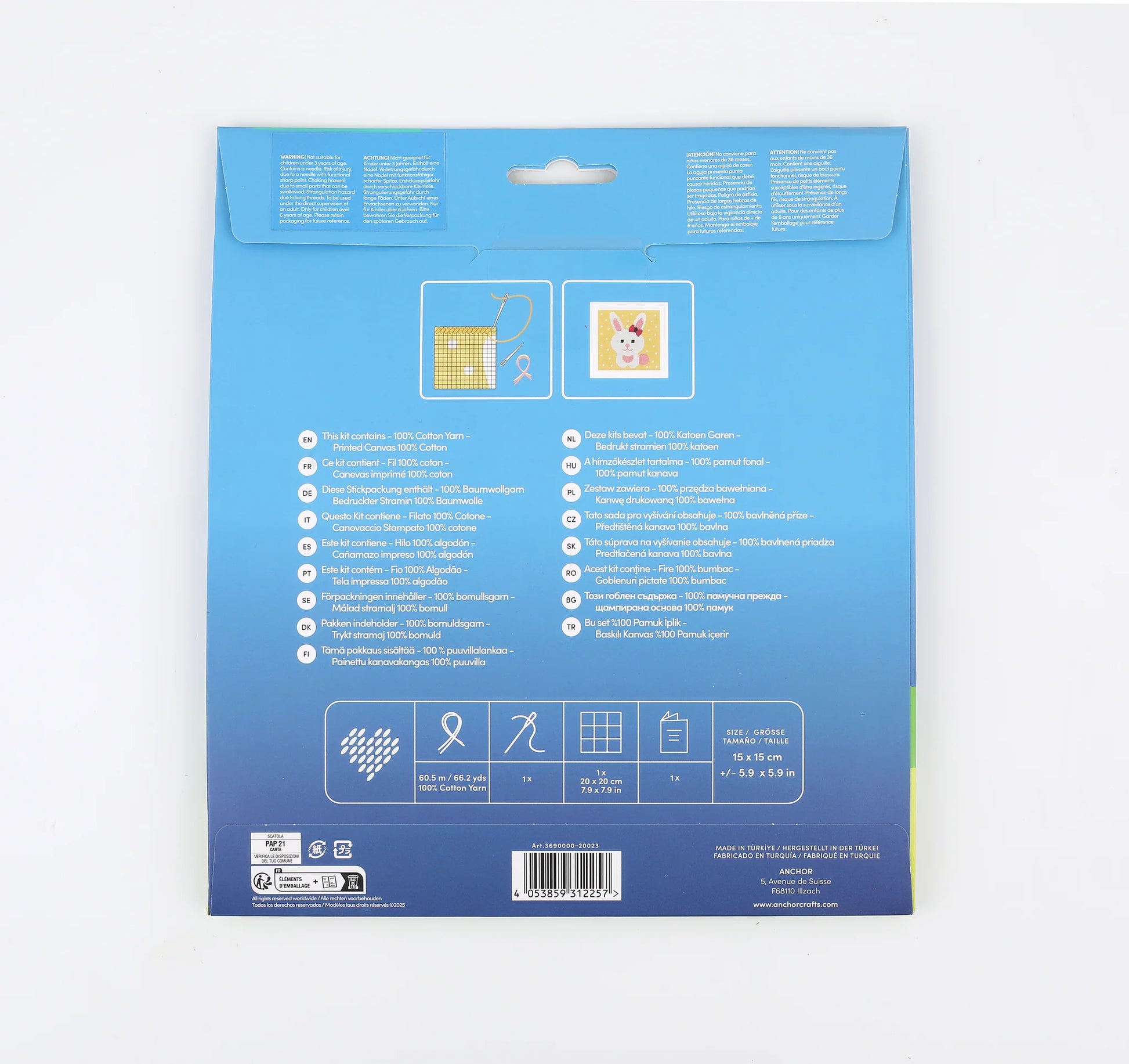 Please note: Not suitable for children under 3 years of age. Contains a rounded tapestry needle. Risk of injury due to a needle with a functional sharp point. To be used under the direct supervision of an adult. Suitable for children 6 years of age and above.