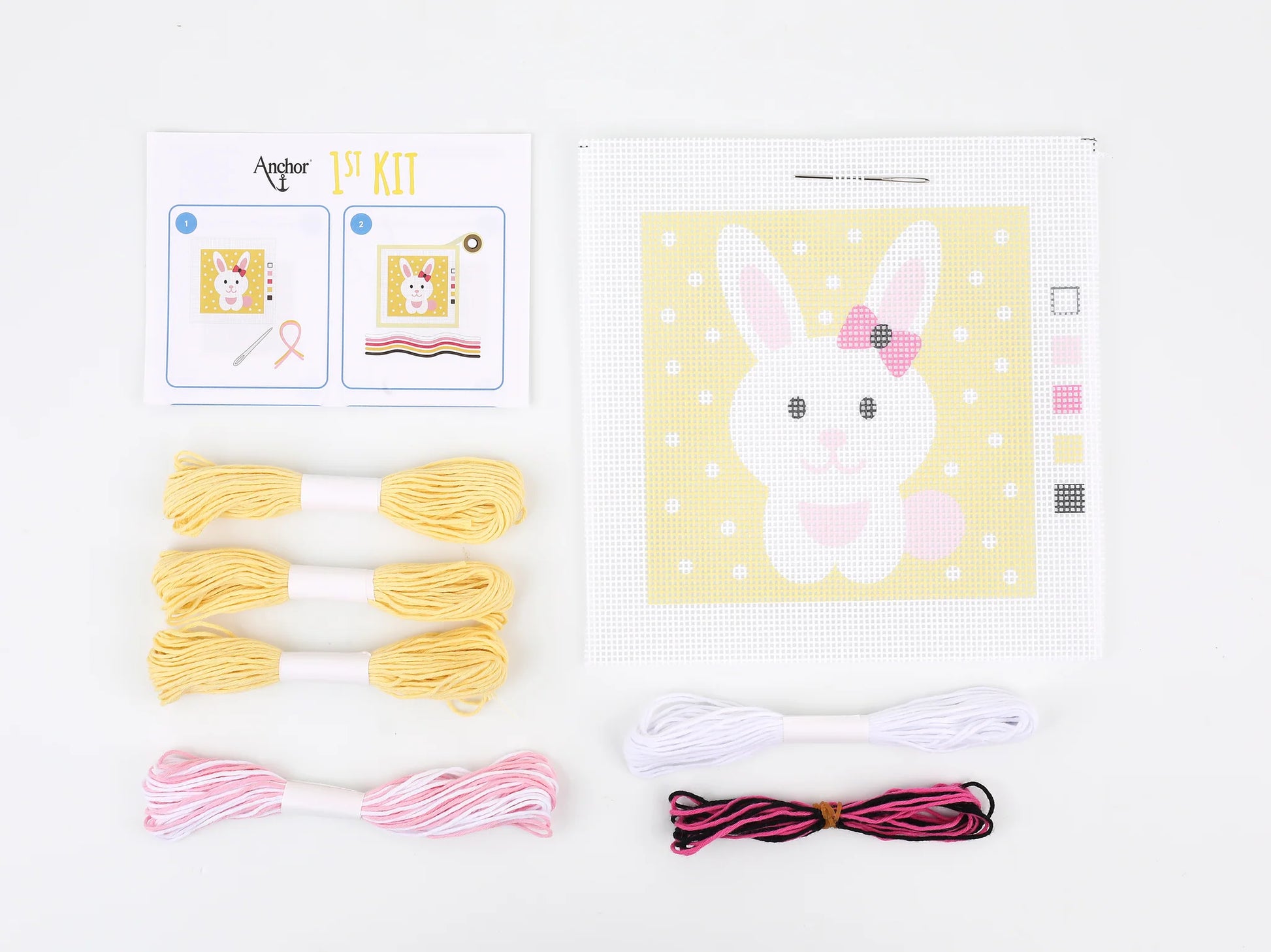 The kit includes a rounded tapestry needle, cotton yarn, printed canvas and step by step instructions and clear charts. Our canvas features large holes, making it easy to pass the needle through.