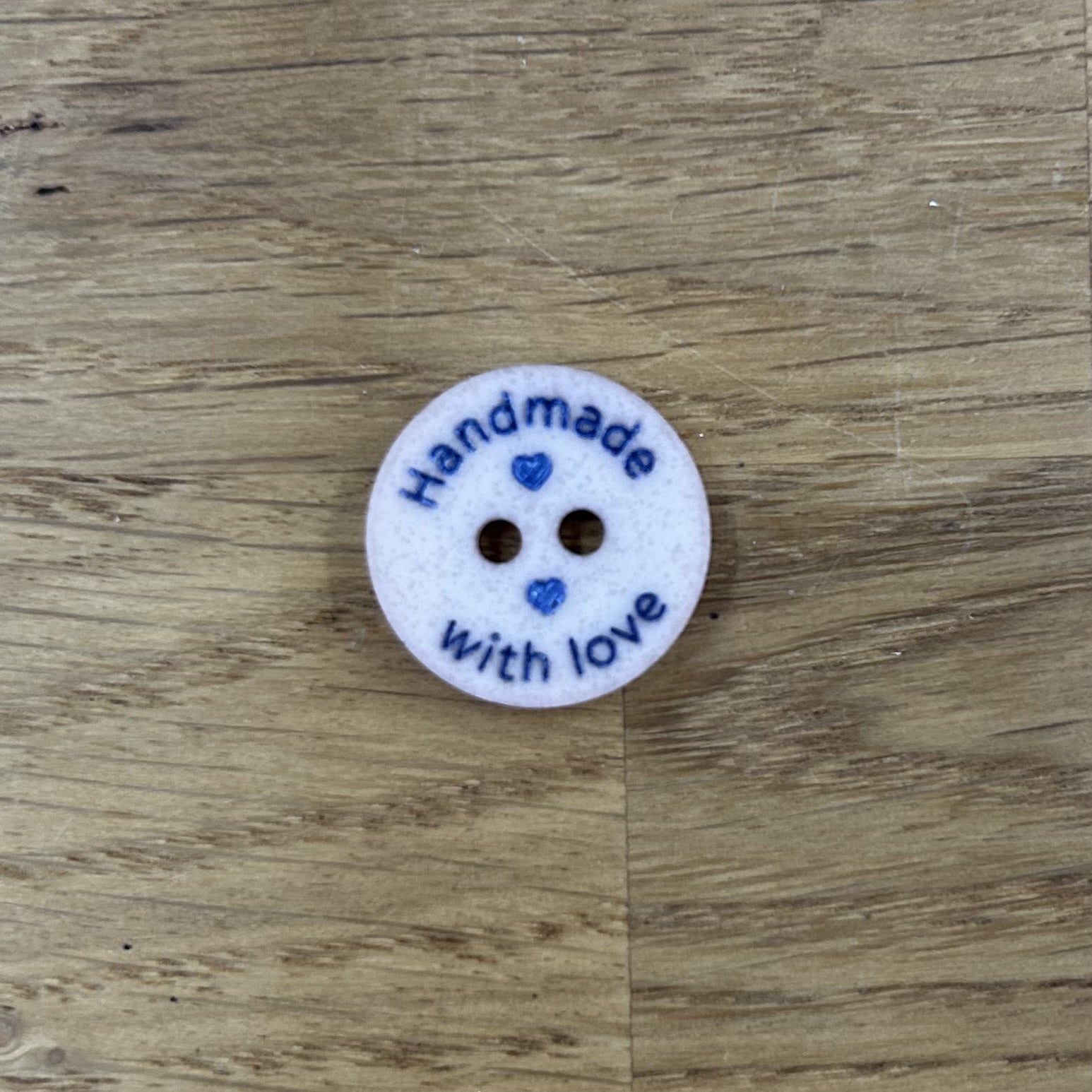 2 Hole Button - 18mm - Beige with Blue - HANDMADE WITH LOVE