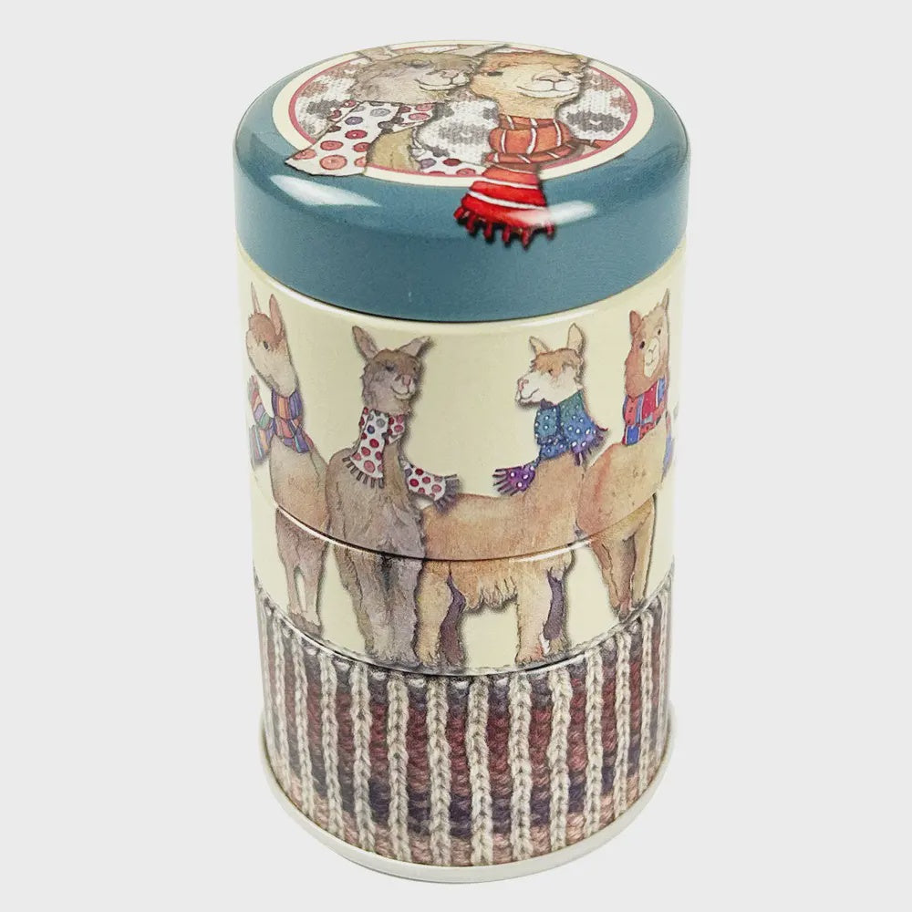Designed by Emma from her Alpacas collection, this handy stacking tin contains 3 different compartments to store all your bits and bobs in.