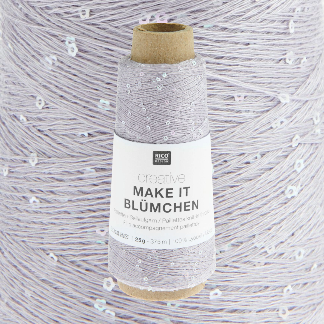 Creative Make It Blümchen is a shimmering yarn enhanced with delicate floral sequins. The small flowers are carefully integrated into the 100% Lyocell carrier thread and color-coordinated. Simply moving the yarn along during knitting creates a unique and stylish look.