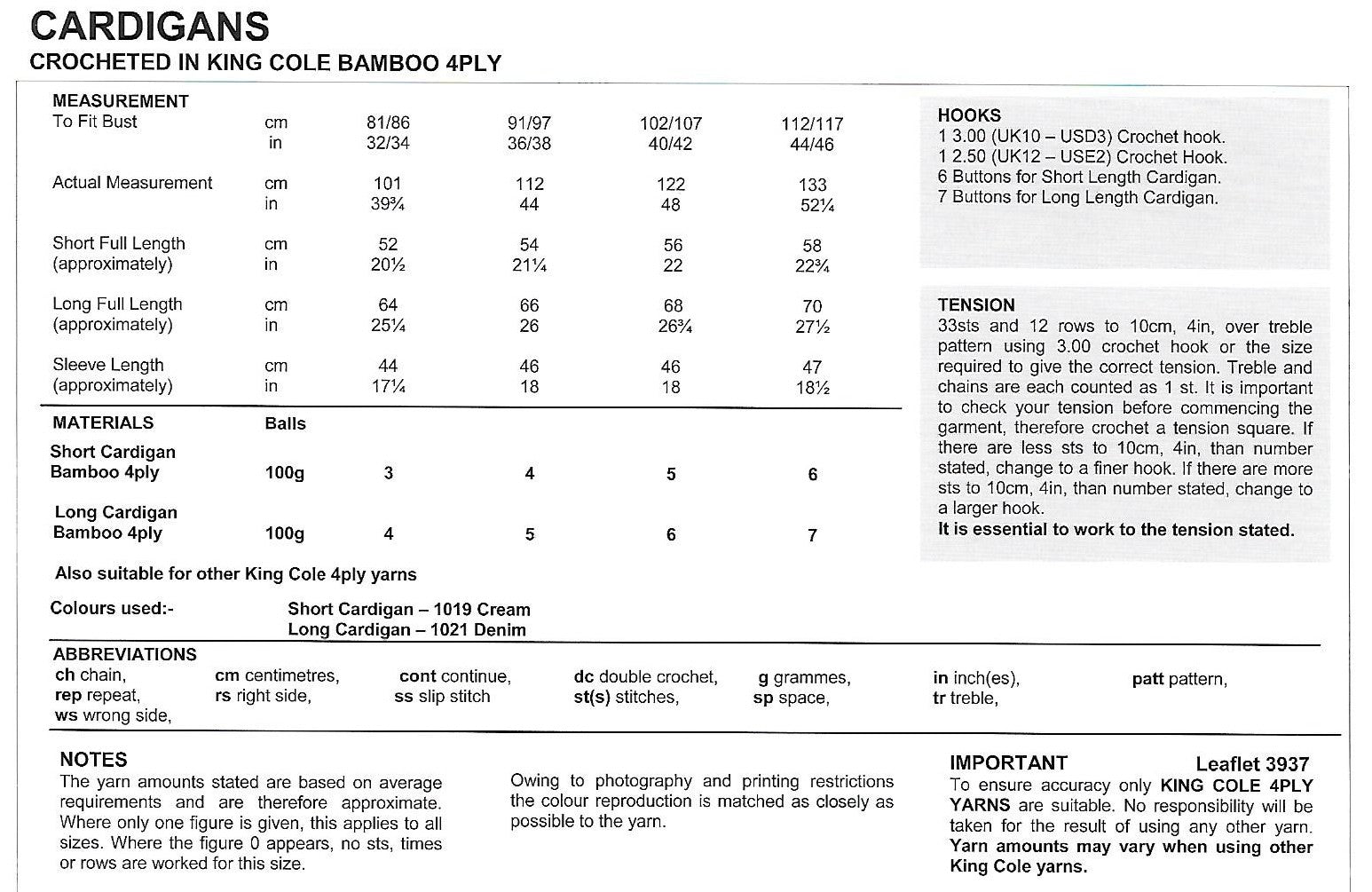 Crochet Pattern 3937 - Cardigans in Bamboo 4 Ply
