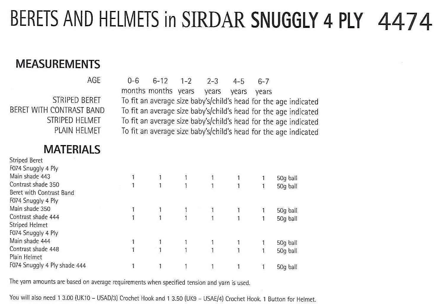 Crochet Pattern 4474 - Berets & Helmets in Snuggly 4 Ply