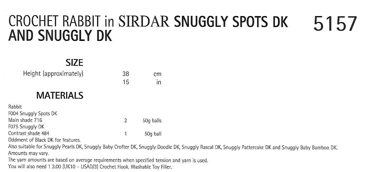 Crochet Pattern 5157 - Rabbit in Snuggly Spots DK & Snuggly DK