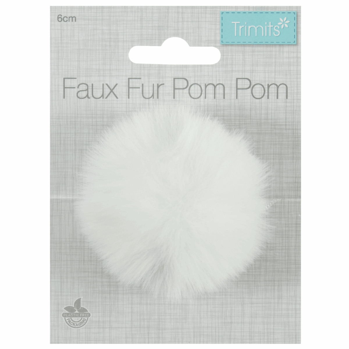 FAUX FUR POM POM - 1 PIECE - 6cm WHITE