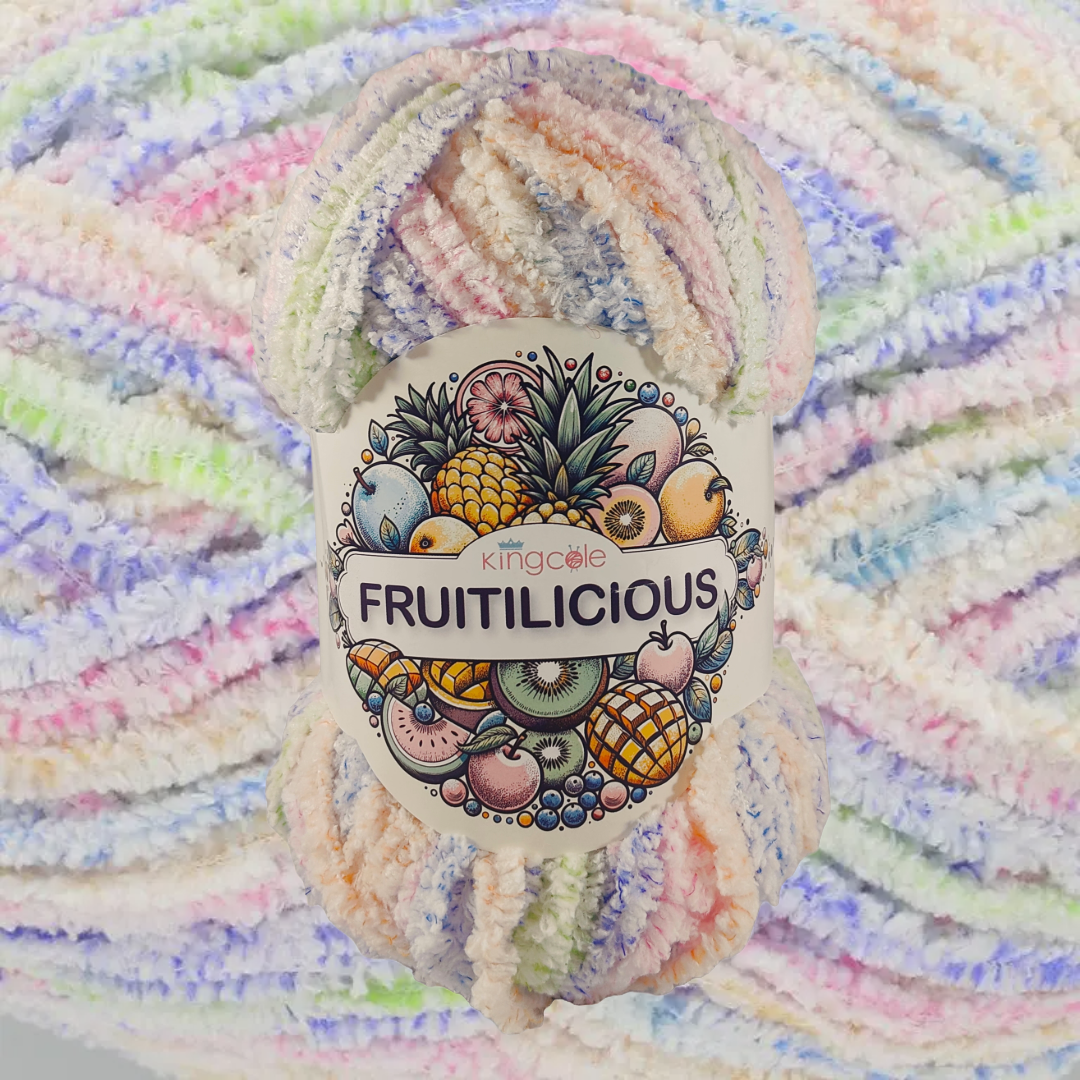Introducing Fruitilicious, a delightfully soft, fluffy yarn perfect for creating adorable patterns for babies and children! Each 100g ball of this multicoloured pastel wonder is crafted from 100% polyester, ensuring a gentle touch against delicate skin. Available in 8 stunning colourways, Fruitilicious offers endless creative possibilities for projects with plush textures. It’s sure to bring joy and comfort to your little ones. Indulge your crafting experience with Fruitilicious, where every stitch is a burst of happiness!