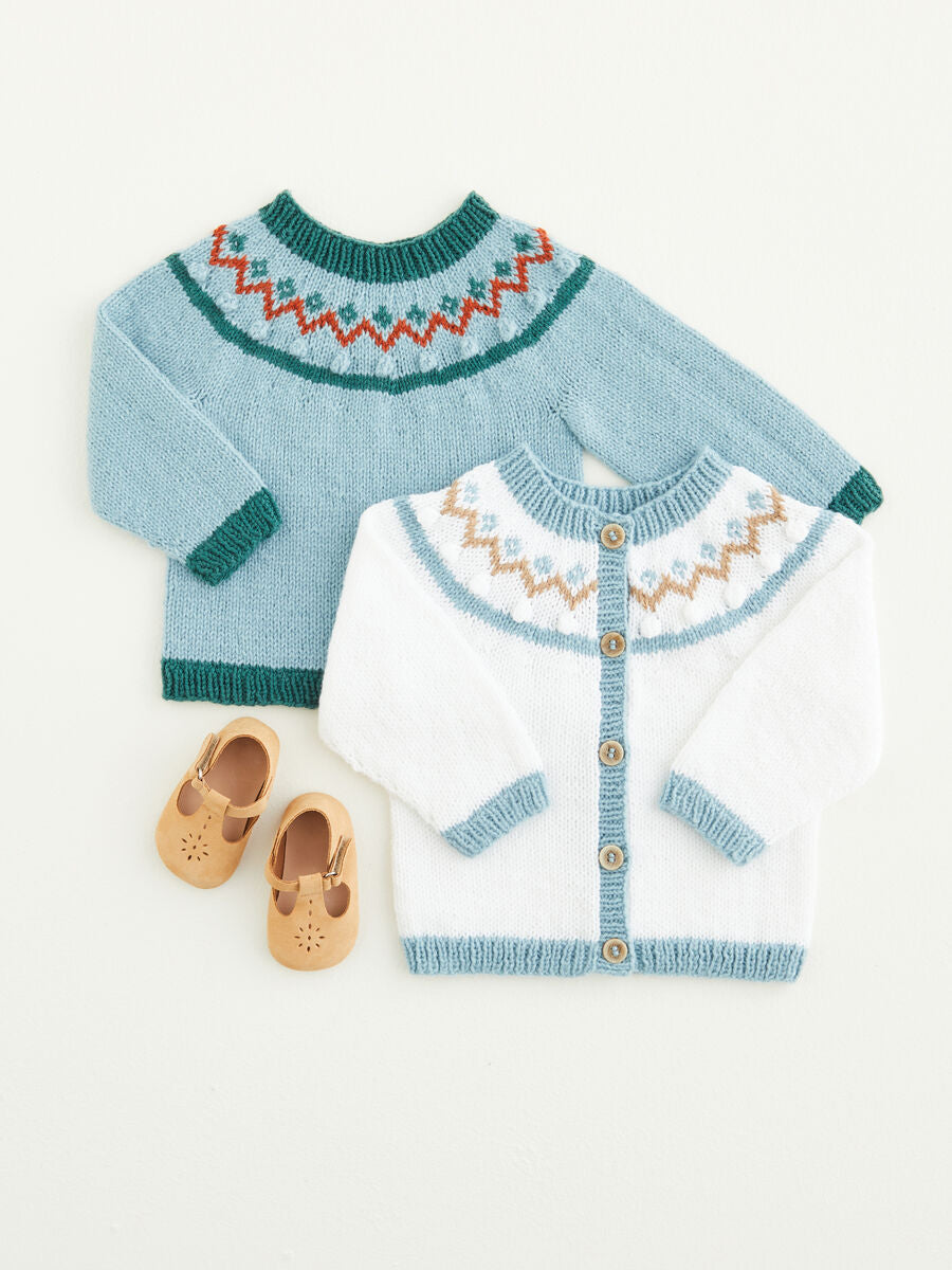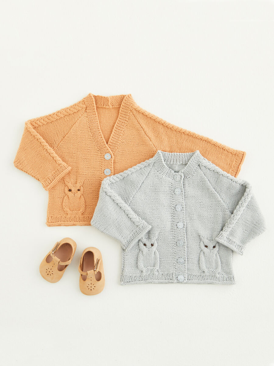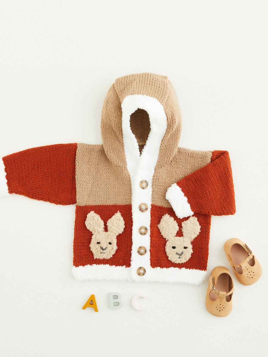 Combining woodland-inspired shades of Britain’s best-selling baby yarn with soft, fluffy Snuggly Bunny, these cute baby garments feature forest flora and fauna, some with furry friends stitched-in.