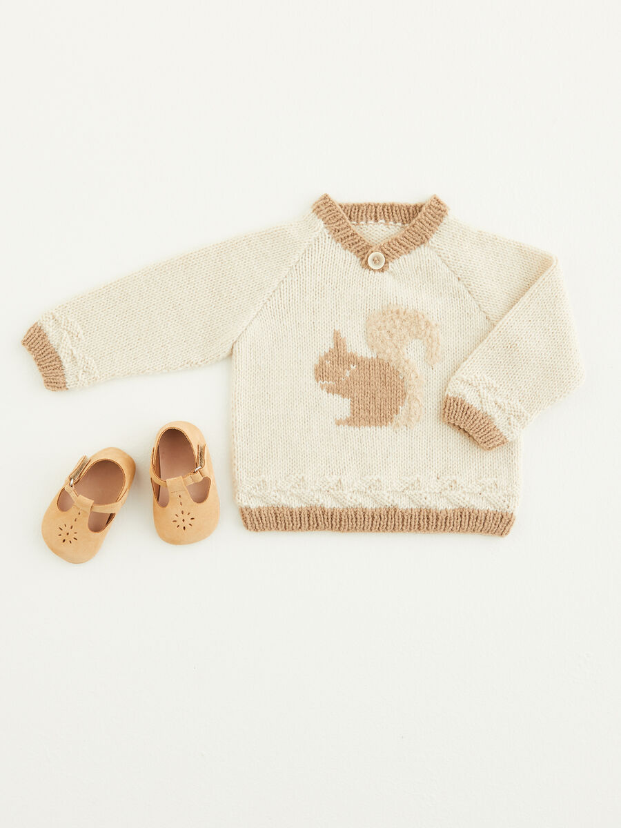 From an owl peeping out of a clever cable stitch to a swiss-darned, fluffy-tailed squirrel sweater to a cute crochet cardigan with twin hedgehog pockets, you could make a whole forest of little friends as your baby grows.