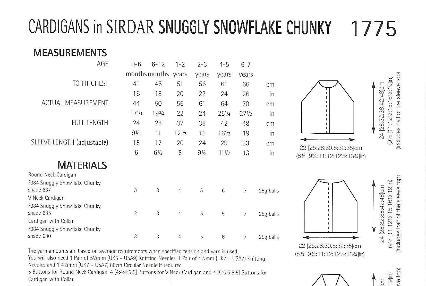 Knitting Pattern 1775 - Cardigans in Snuggly Snowflake Chunky