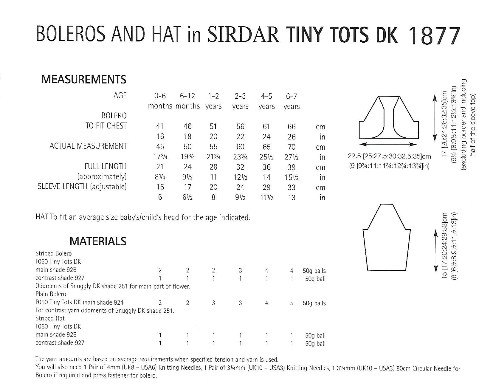Knitting Pattern 1877 - Boleros & Hat in Tiny Tots DK