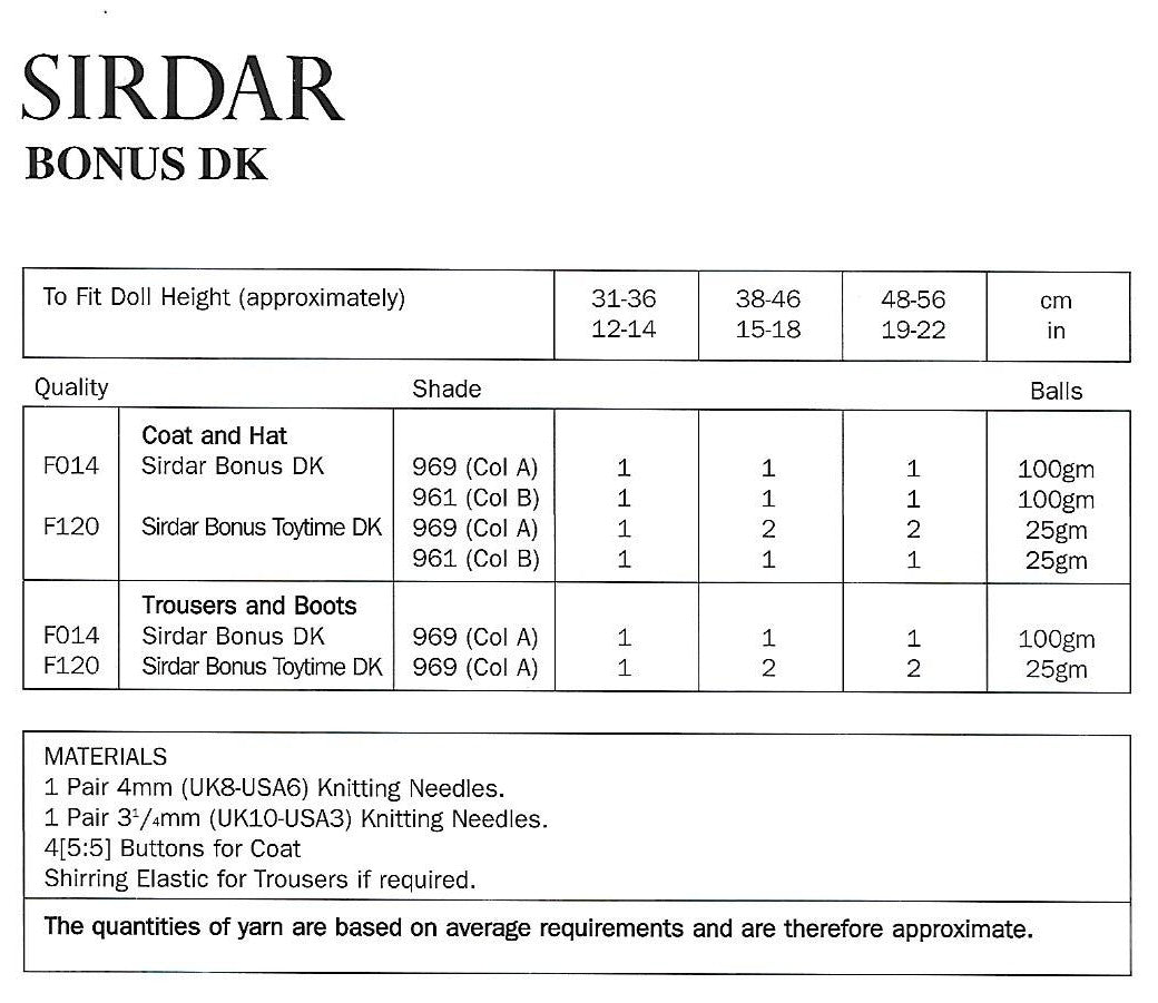 Knitting Pattern 3124 - Doll's Outfit in Bonus DK & Toytime DK