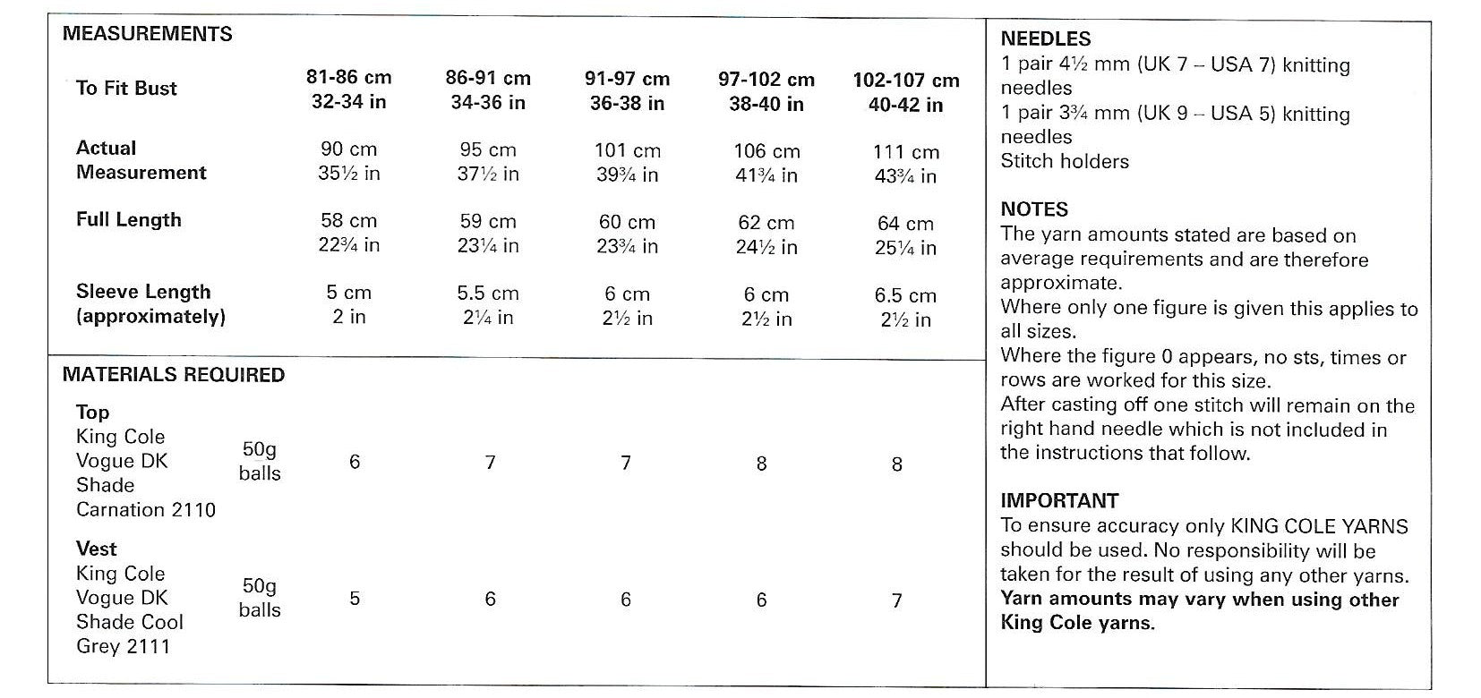 Knitting Pattern 4458 - Ladies Top & Vest in Vogue DK