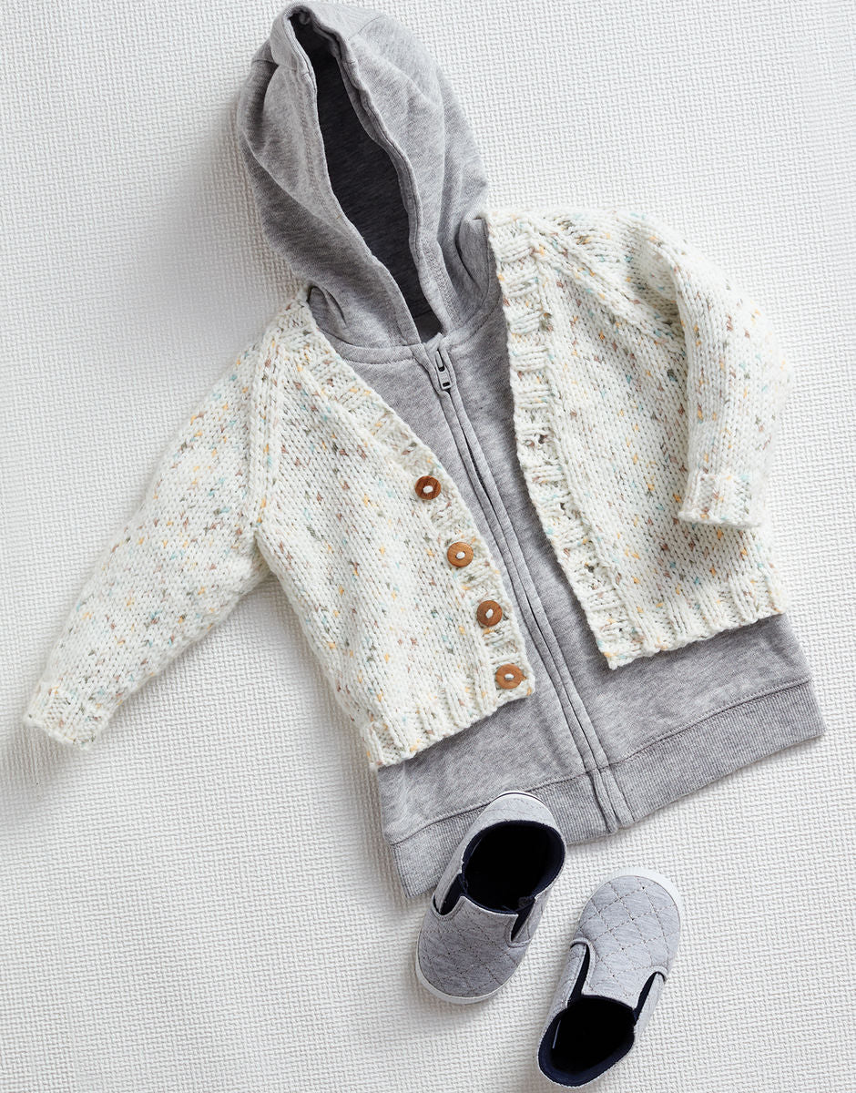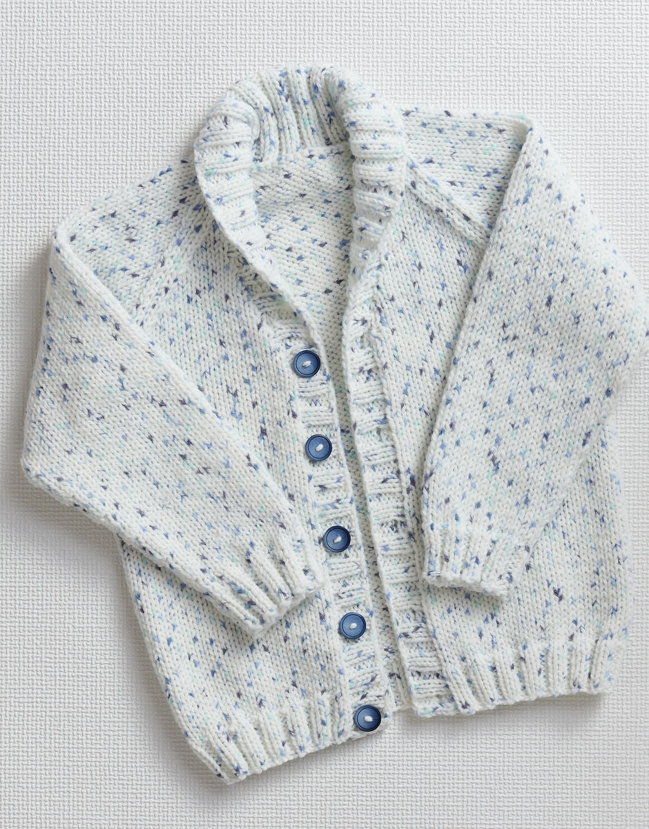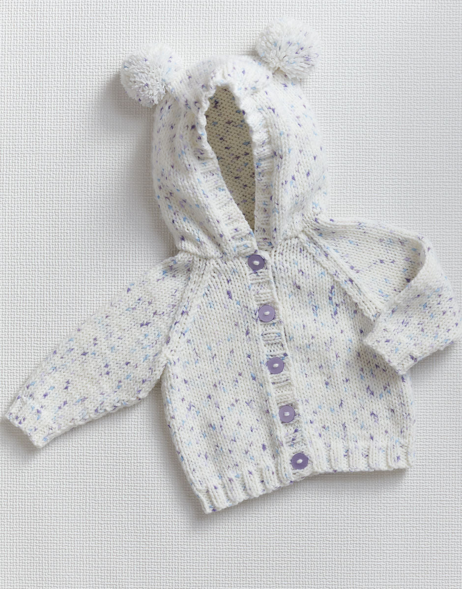 A selection of cardigans knitted in our cute colour effect yarn for little ones up to 7 years. Add a hood with pom poms for precious littles ones or a collar for bigger kids.