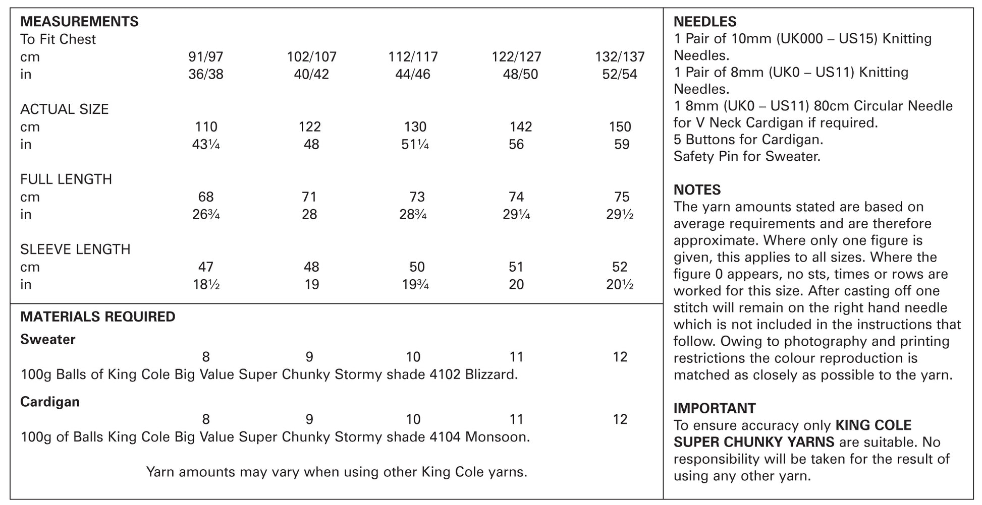 Knitting Pattern 5307 - V Neck Cardigan & Sweater Knitted in Big Value Super Chunky Stormy