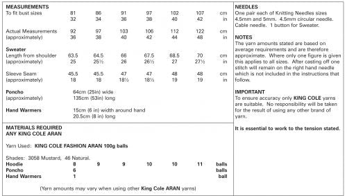 Knitting Pattern 5396 - Hoodie & Poncho Knitted in Fashion Aran