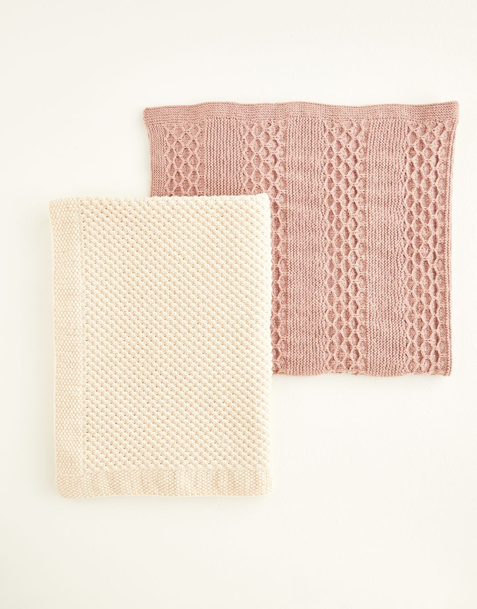 Two star stitch blankets in soothing shades of Hayfield Baby Bonus DK to keep your little ones cosy. Either blanket would make a thoughtful baby gift or a mindful project for a new parent. Knitting level: Intermediate You will also need: 1 4mm (UK8 – USA6) 80cm Circular Needle and 1 3.25mm (UK10 – USA3) 80cm Circular Needle.