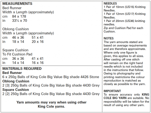 Knitting Pattern 5534 - Bed Runner & Cushions Knitted in Big Value BIG