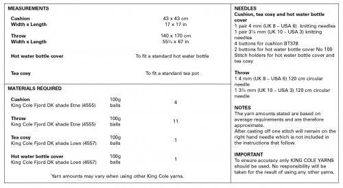 Knitting Pattern 5655 - Cushion, Throw, Tea Cosy & Hot Water Bottle Cover Knitted in Fjord DK