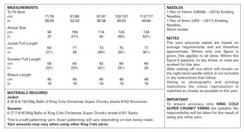 Knitting Pattern 5779 - Jacket & Sweater Knitted in Christmas Super Chunky
