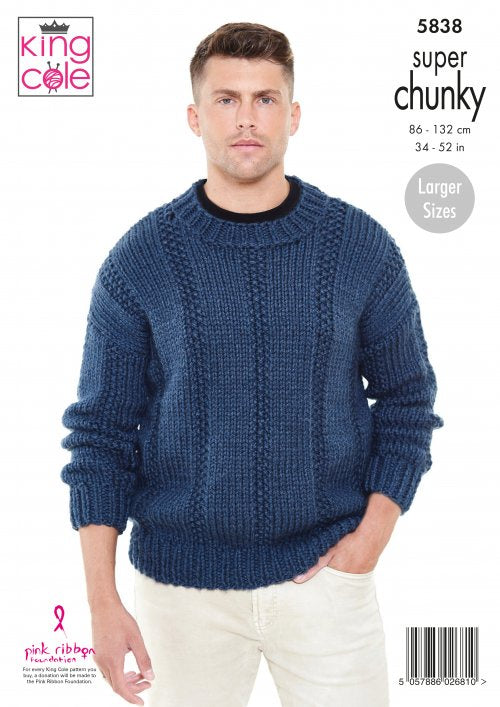 Knitting Pattern 5838 - Sweaters Knitted in Big Value Super Chunky