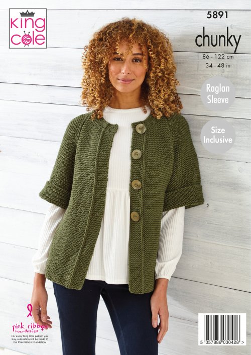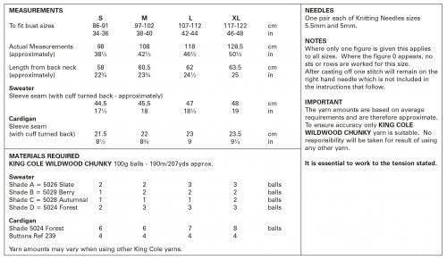 Knitting Pattern 5891 - Sweater and Cardigan Knitted in Wildwood Chunky