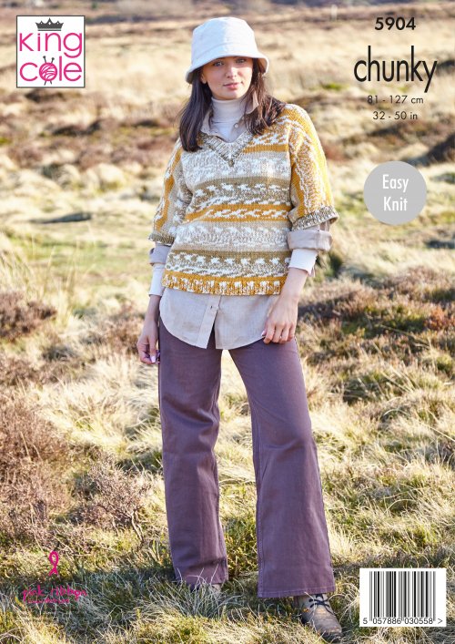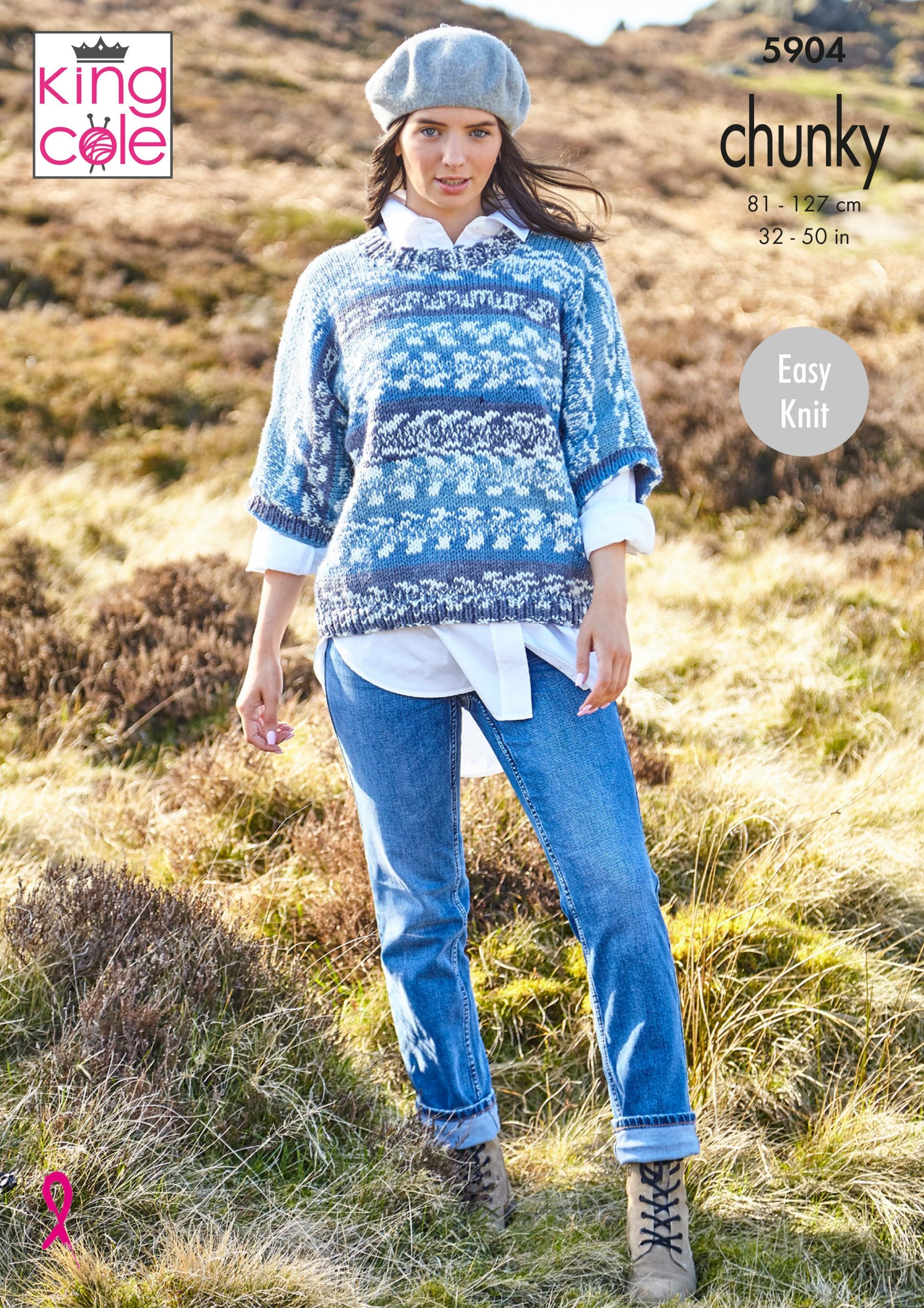 Knitting Pattern 5904 - Ladies Round and V Neck Sweaters: Knitted in King Cole Nordic Chunky
