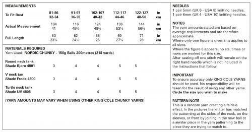 Knitting Pattern 5905 - Ladies Round, V Neck and Turtle Neck Tanks: Knitted in King Cole Nordic Chunky