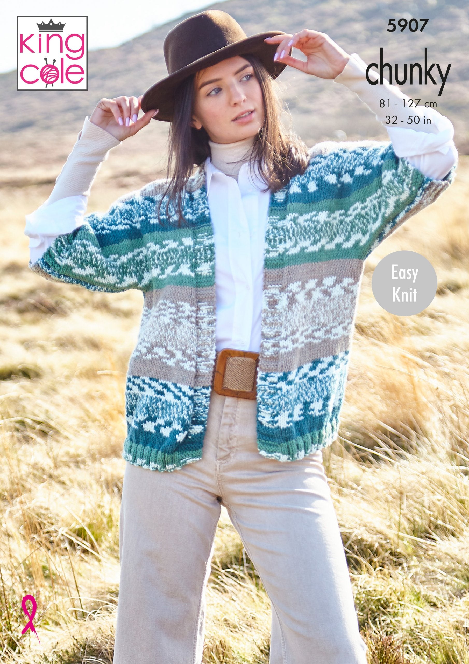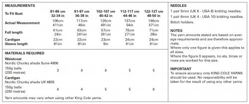 Knitting Pattern 5907 - Cardigan and Waistcoat: Knitted in King Cole Nordic Chunky