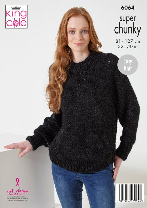Knitting Pattern 6064 - Sweaters Knitted in Celestial Super Chunky