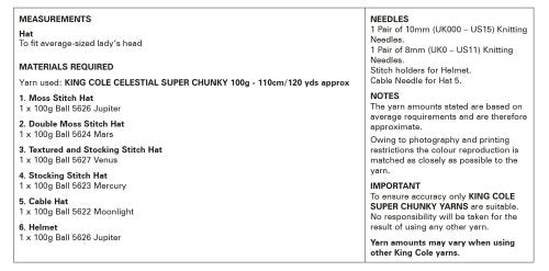 Knitting Pattern 6070 - Hats Knitted in Celestial Super Chunky