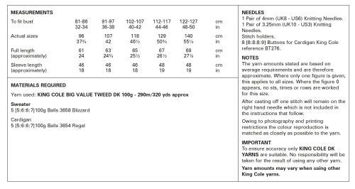 Knitting Pattern 6092 - Sweater & Cardigan Knitted in Big Value Tweed DK