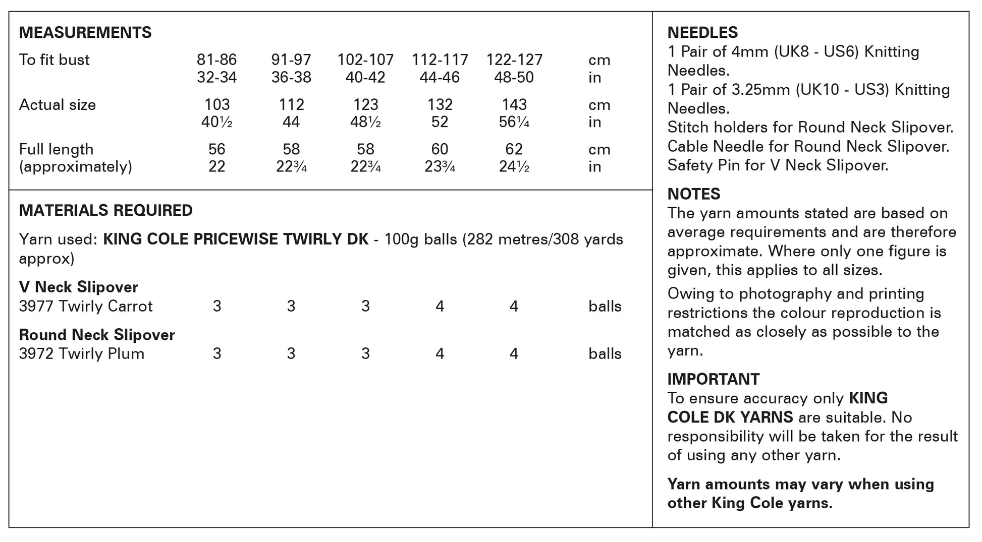 Knitting Pattern 6136 - Slipovers Knitted in Pricewise Twirly DK