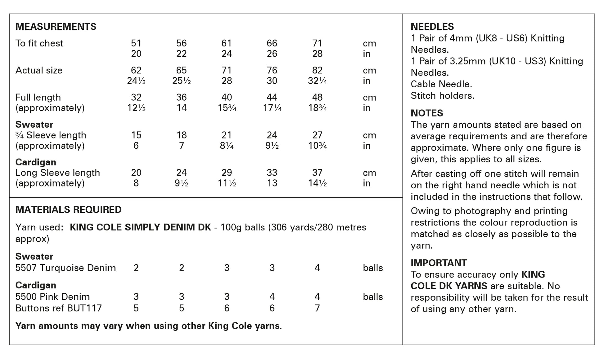 Knitting Pattern 6154 - Sweater & Cardigan Knitted in Simply Denim DK