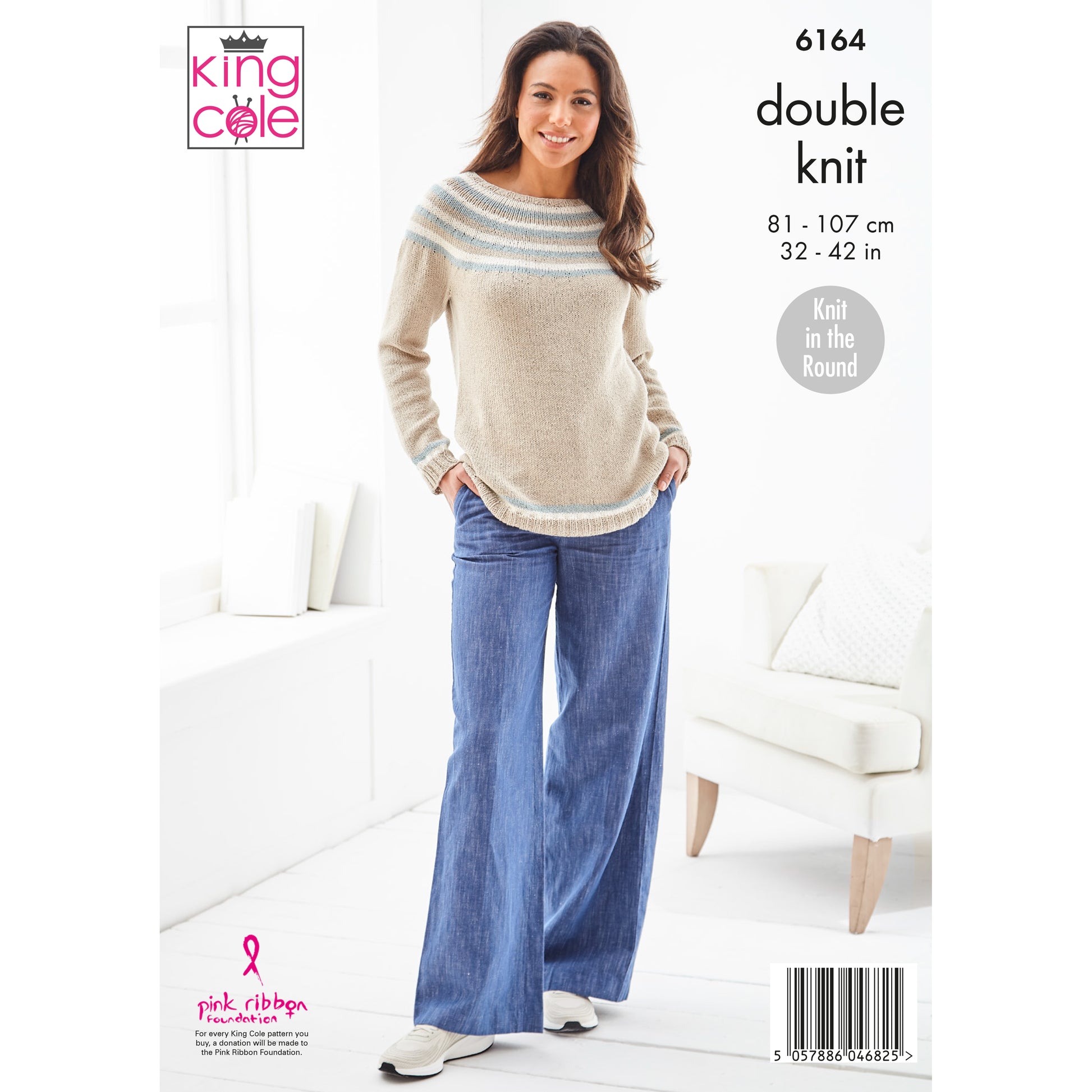 Knitting Pattern 6164 - Easy Knit ‘Knit in the Round’ Sweaters: Knitted in King Cole Finesse Cotton Silk DK