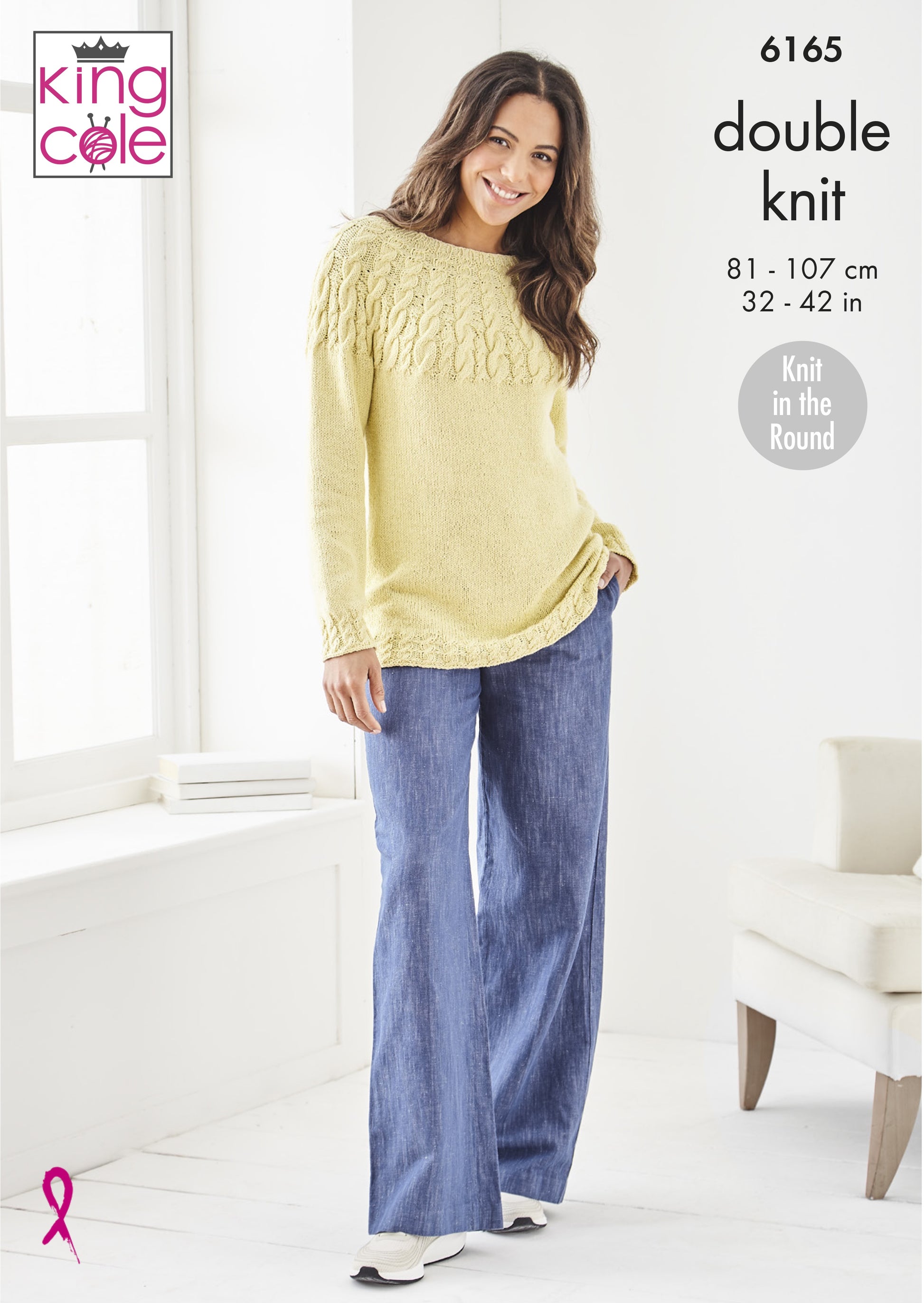 Knitting Pattern 6165 - Knit in the Round Sweaters: Knitted in King Cole Finesse Cotton Silk DK