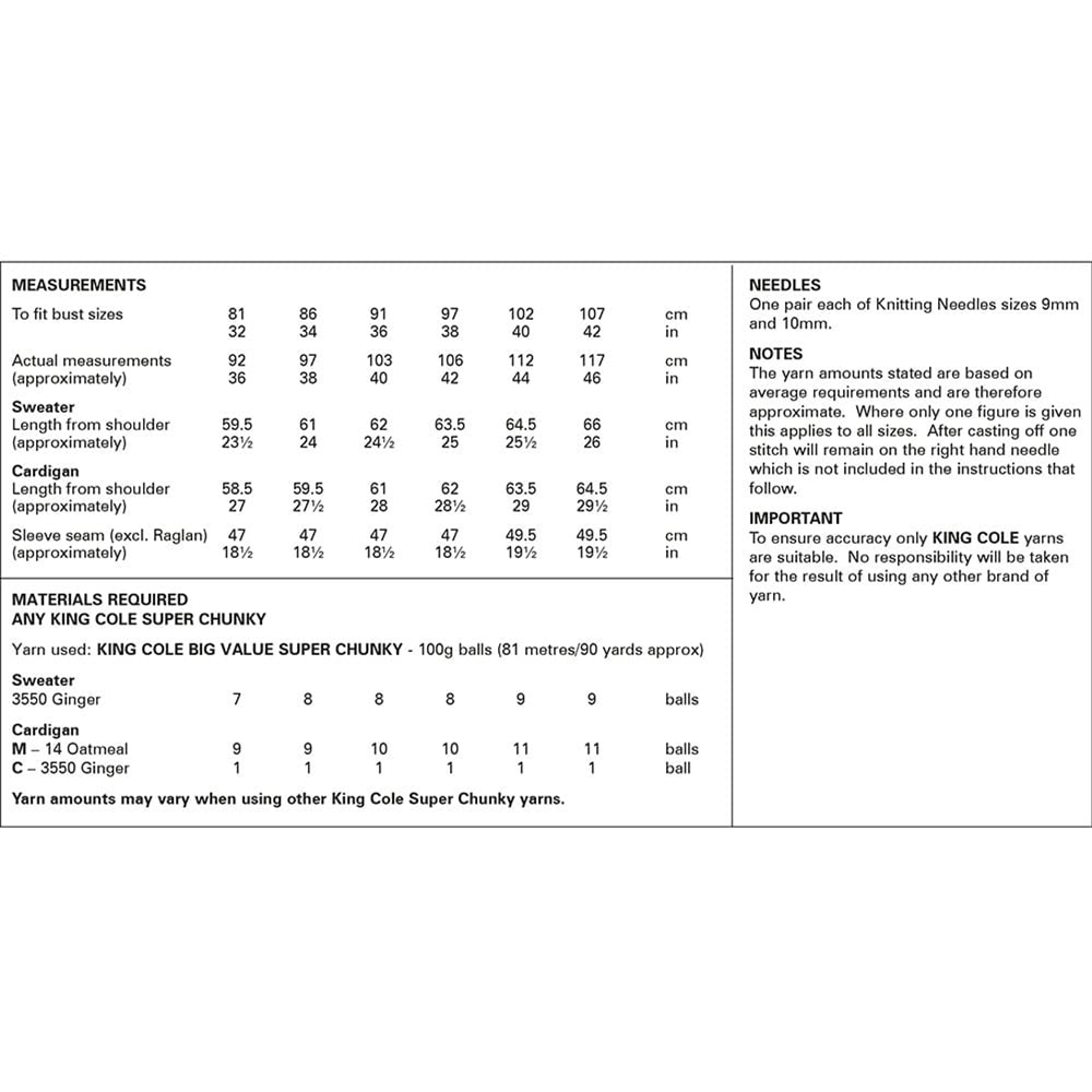 Knitting Pattern 6218 - Sweater and Cardigan in Super Chunky