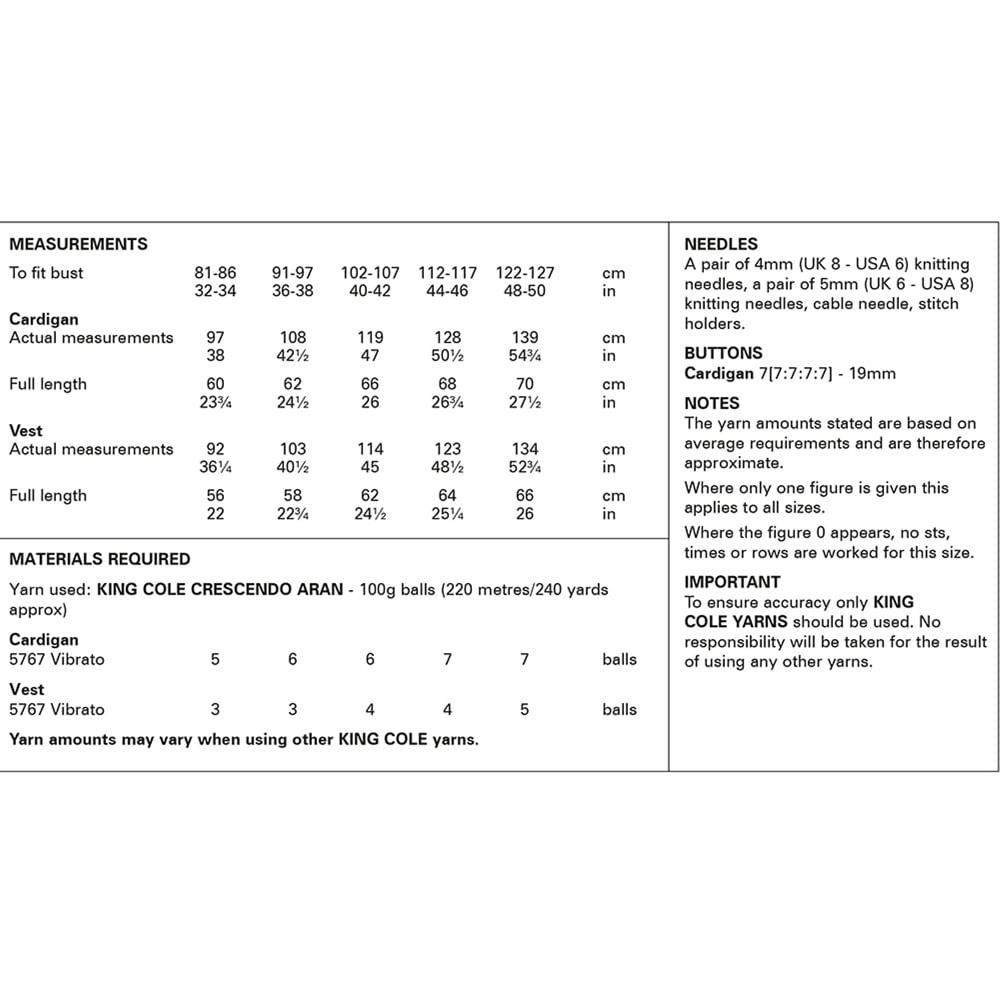 Knitting Pattern 6227 - Ladies Cardigan and Vest in Aran