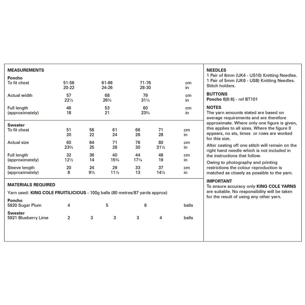 Knitting Pattern 6240 - Poncho and Sweater in Fruitilicious Chunky