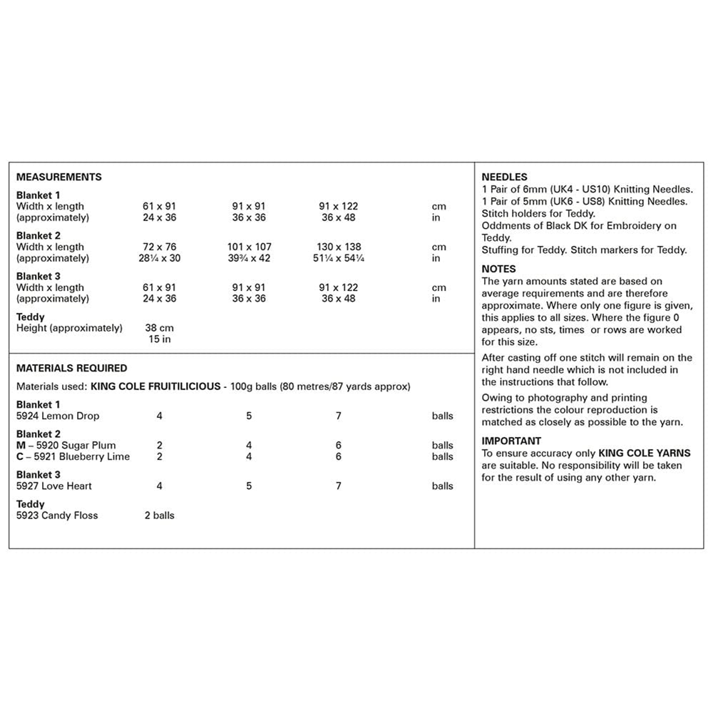 Knitting Pattern 6241 - Blankets and Teddy in Fruitilicious Chunky
