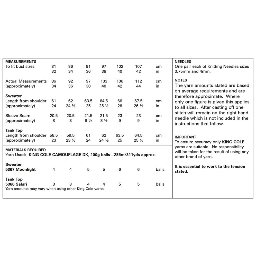 Knitting Pattern 6283 - Sweaters and Tank Top in Camouflage DK