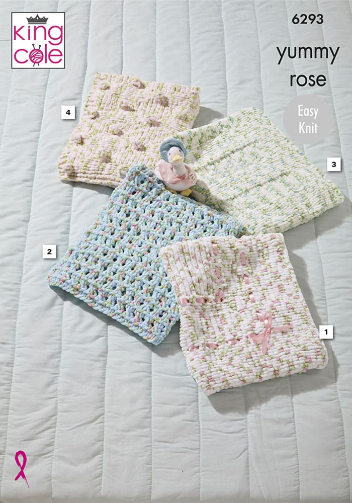 Knitting Pattern 6293 - Blankets Knitted in Yummy Rose