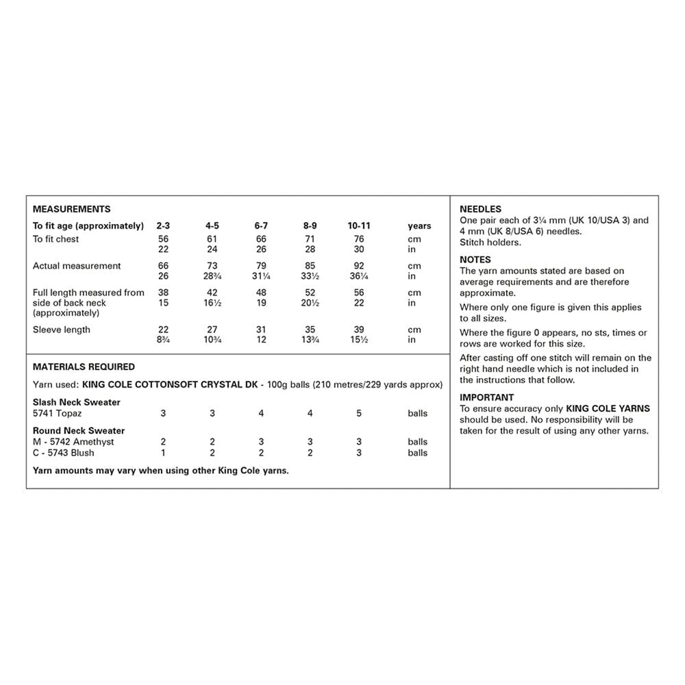 Knitting Pattern 6298 - Child’s Sweaters knitted in Cottonsoft Crystal DK