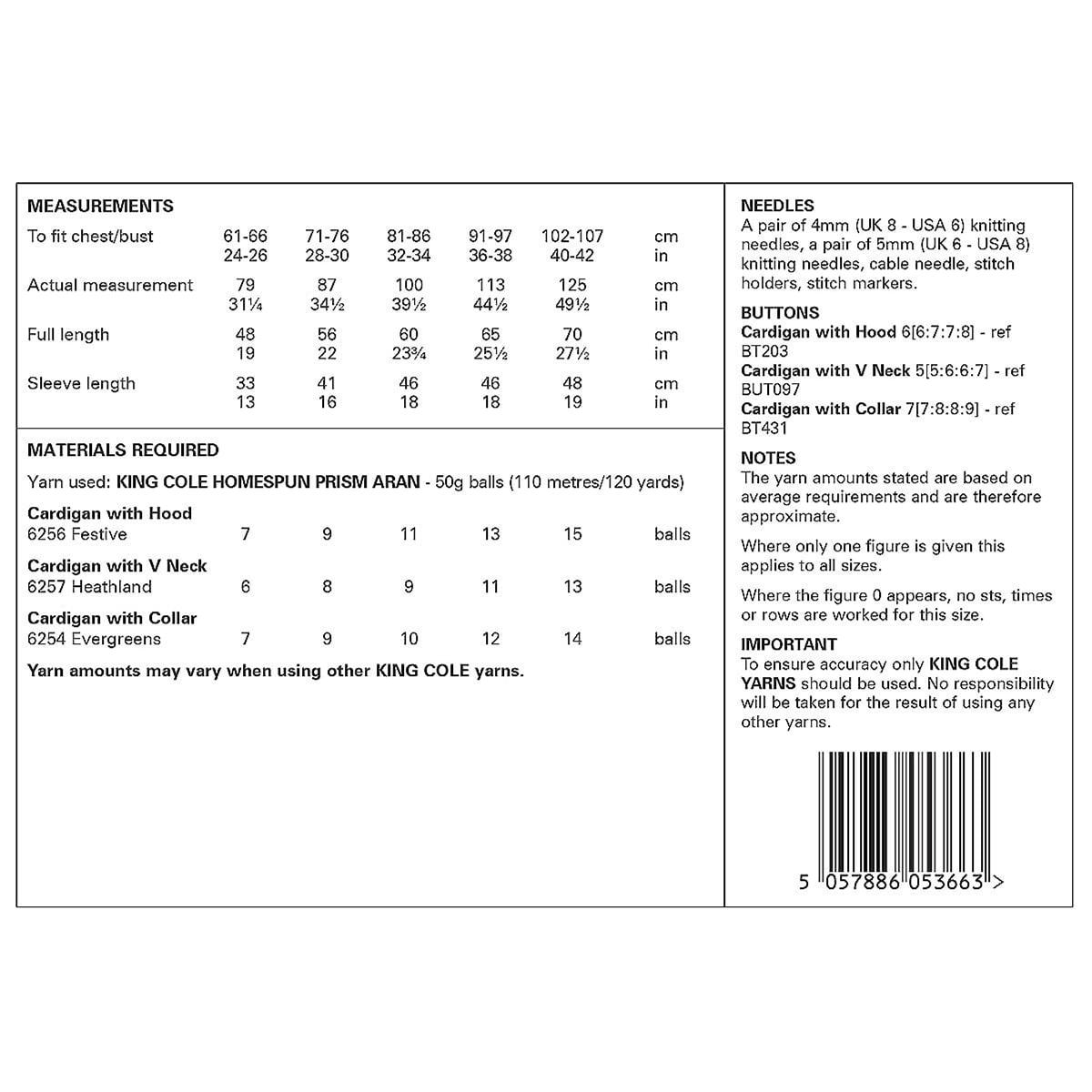 Knitting Pattern 6305 - Cardigans knitted in Homespun Prism Aran