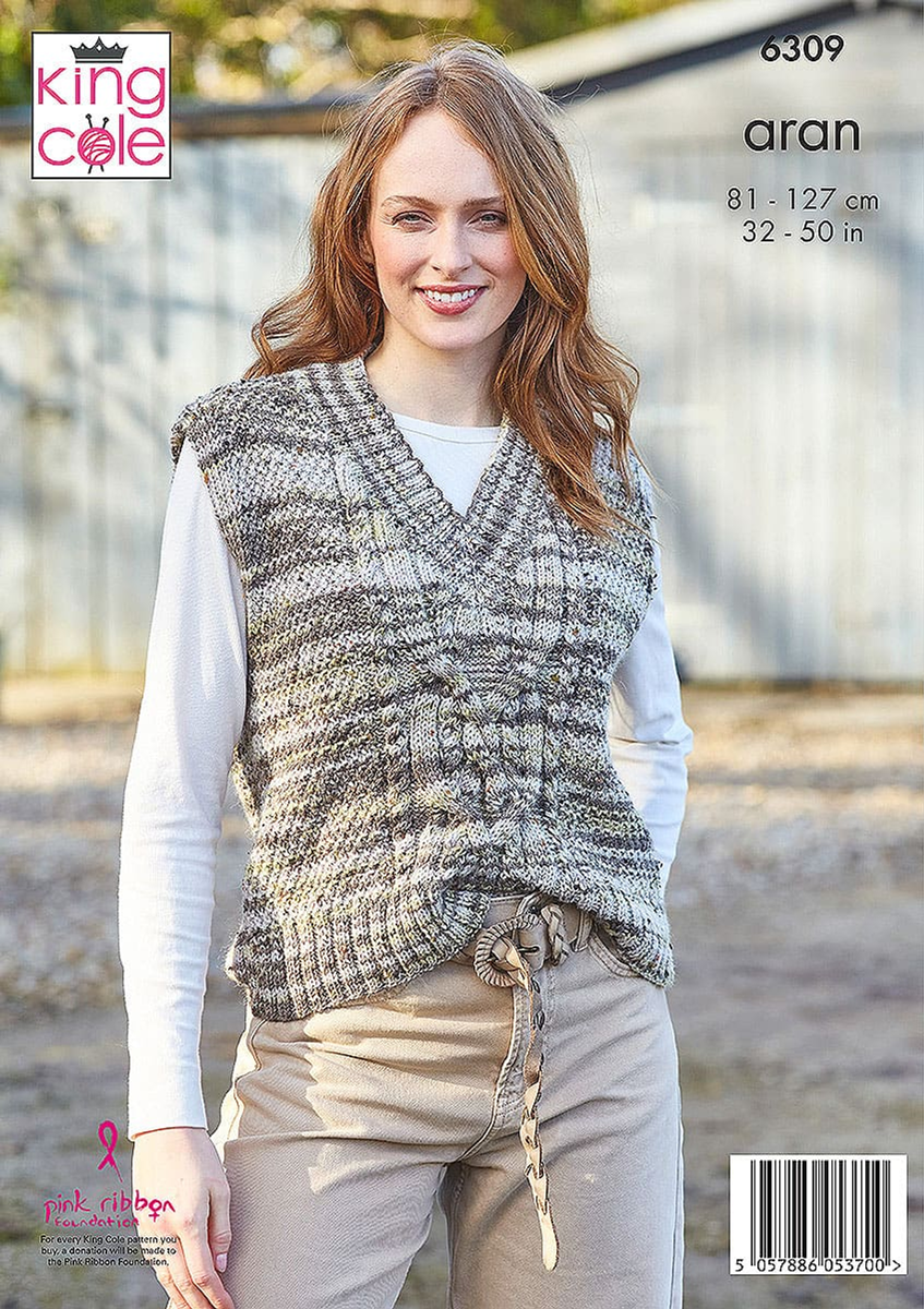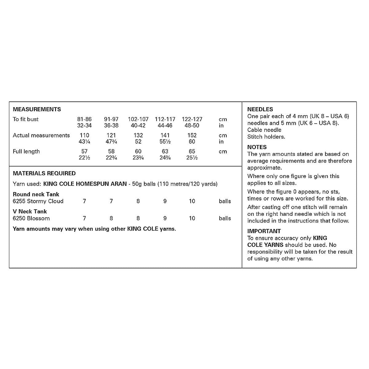 Knitting Pattern 6309 - Ladies Round and V Neck Tanks knitted in Homespun Prism Aran