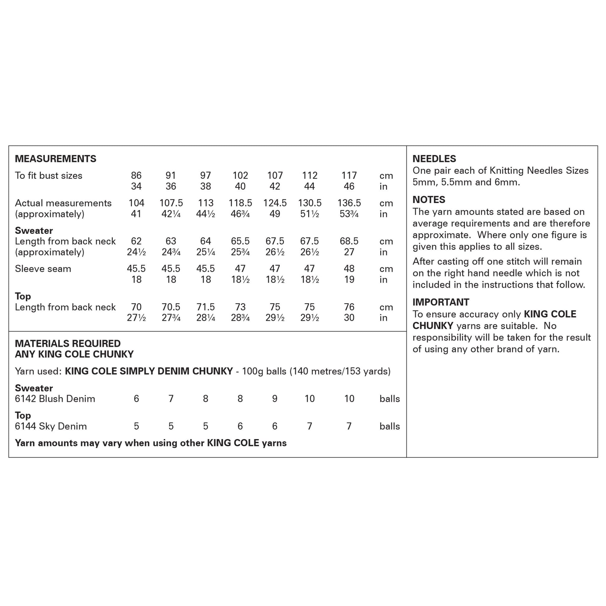 BEST SELLER - Knitting Pattern 6379 - V Neck Sweater and Top knitted in Simply Denim Chunky