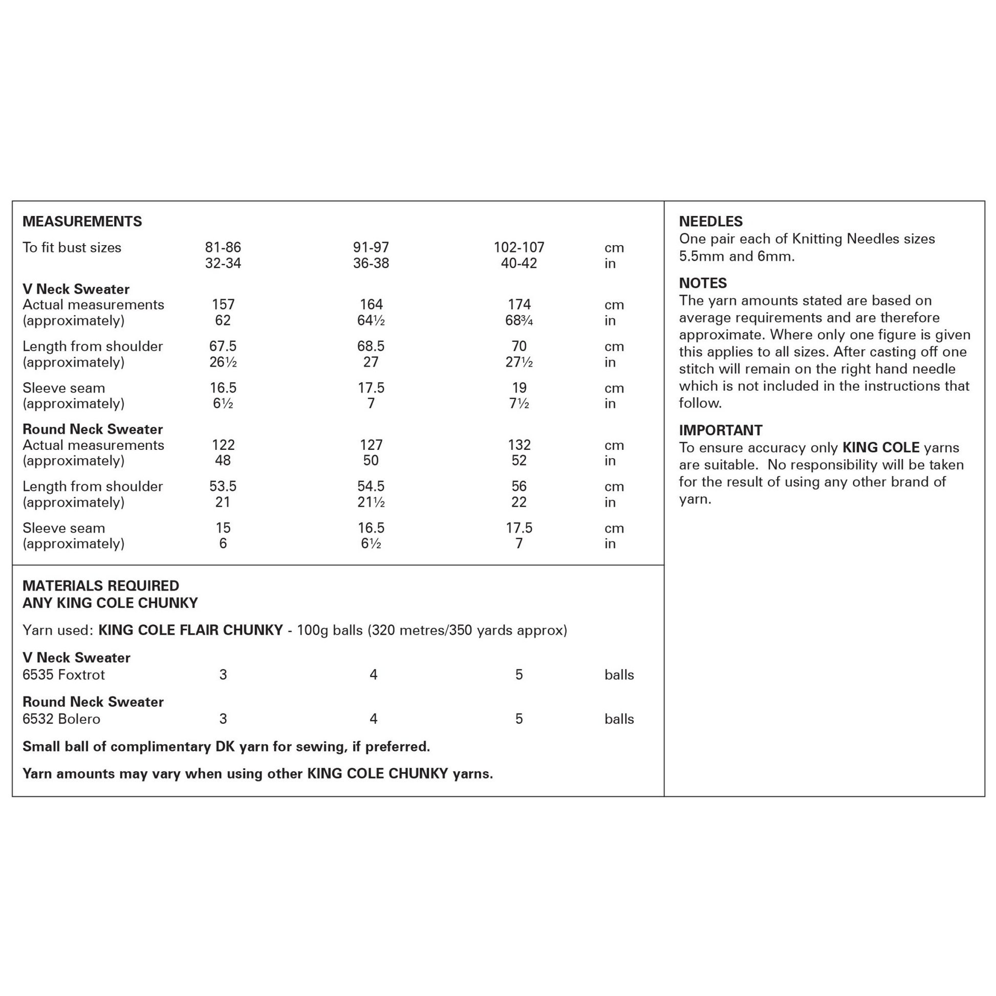Knitting Pattern 6386 - Sweaters in Flair Chunky