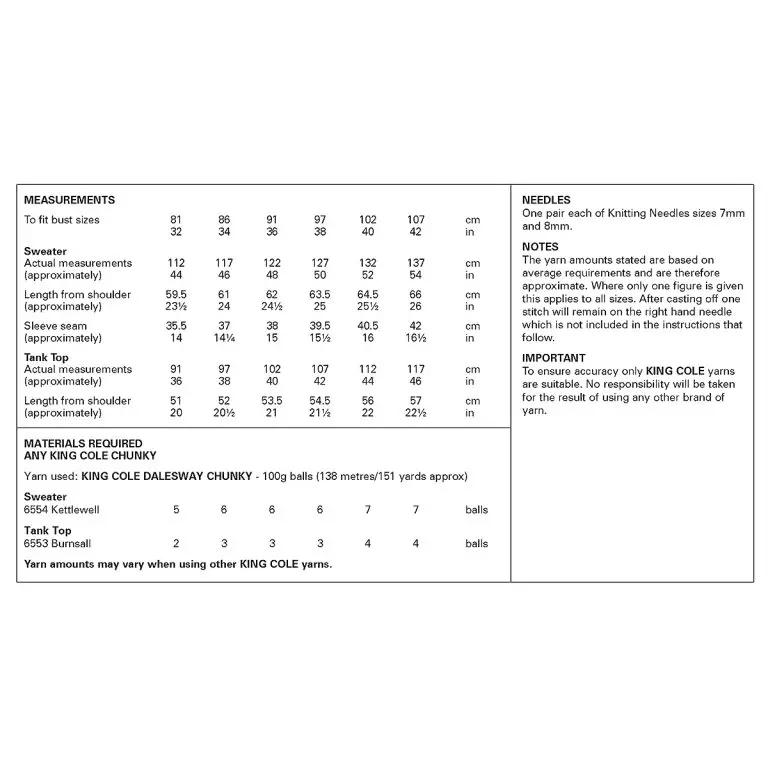 Knitting Pattern 6409 - Ladies’ Sweater and Tank Top knitted in Dalesway Chunky
