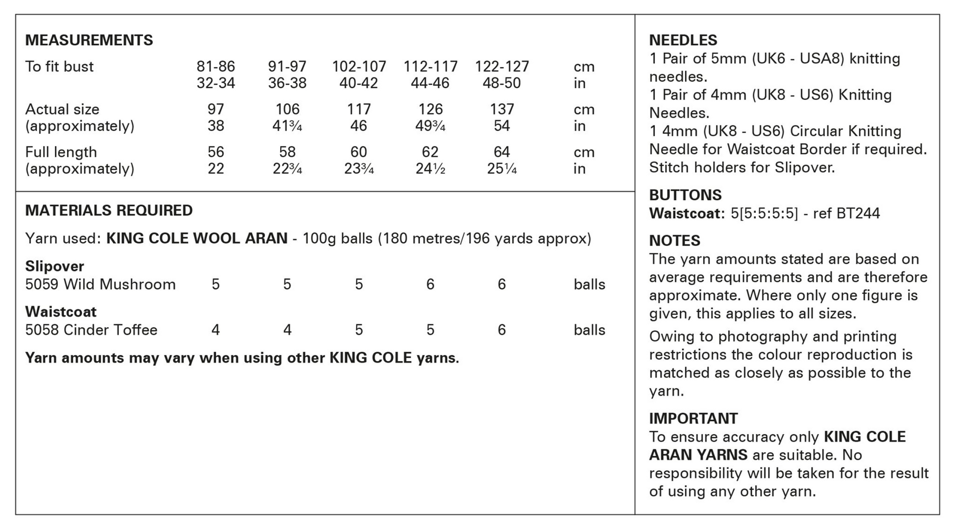 Knitting Pattern 6428 - Slipover and Waistcoat knitted in Wool Aran