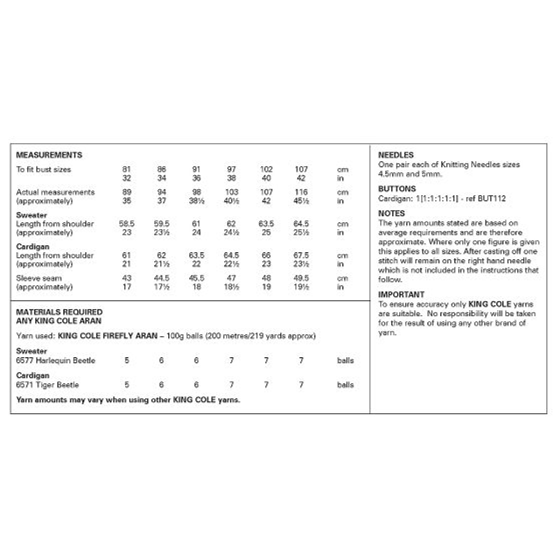 Knitting Pattern 6446 - Sweater & Cardigan in Firefly Aran