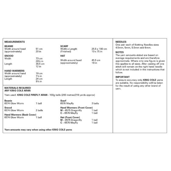 Knitting Pattern 6450 - Accessories in Firefly Aran